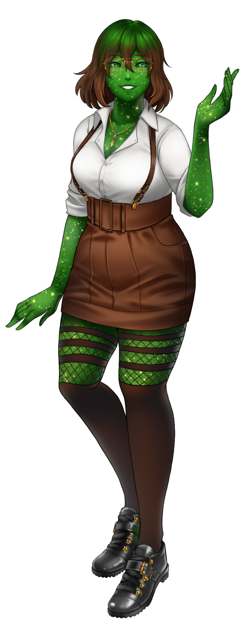 Lexi inherited her family's bookstore after her career plans didn't quite pan out, and now she minds the shop. One day, she got struck with the added responsibility of being a half-dead host to an elder god, and eventually, they merged and she ended up a glitter-ink slimegirl! Wild stuff!Now, she streams (somewhat) regularly on Twitch, playing whatever games strike her fancy between randomized Ocarina of Time seeds with her girlfriend!